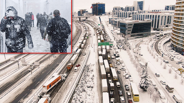 - İstanbul’da yoğun kar yağışı nedeniyle önceki gün D-100 Karayolu’nda trafik uzun süre durdu. Otobüs ve dolmuş seferlerinin aksaması üzerine vatandaşlar metrobüs, metro ve tramvay duraklarına akın etti. Otobüs ve minibüs gibi toplu taşıma araçlarından inen vatandaşlar, E-5 karayolundan yürümeye başladı. Toplu taşıma duraklarında uzun kuyruklar oluştu.