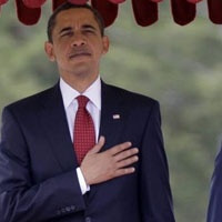 Obama daha sonda iki ülke marşının çalınmasının ardından tören kıtasını selamladı.