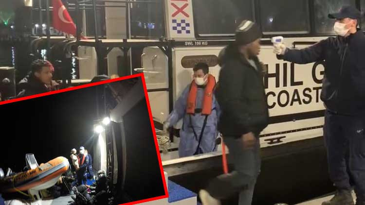 Sahil Güvenlik ekipleri, Çeşme ilçesi açıklarında 5 Nisan gecesi yasak yollar ile yurt dışına kaçmaya çalışan düzensiz göçmenlerin olduğu ihbarı üzerine harekete geçti.