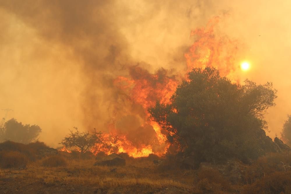 Yangın, Dikili ilçesine bağlı Çandarlı Mahallesi'nde saat 14.21'de ormanlık alanda başlamıştı.