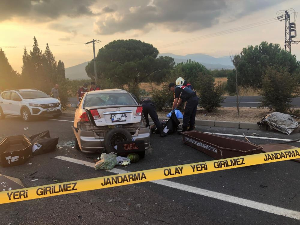 Kaza, saat 18.00 sıralarında İzmir-Ankara Caddesi Armutlu yol ayrımı yakınında meydana geldi. Edinilen bilgiye göre, Turgutlu istikametinden İzmir istikametine seyir halinde olan Hüseyin Ali Ceylan (54) idaresindeki 45 UU 861 plakalı otomobil, sürücüsünün direksiyon hakimiyetini yitirmesi sonucu refüjü aşarak karşı yöne geçti. Araç bu esnada Turgutlu istikametine seyir halinde olan Tuncay Y. (54) idaresindeki 35 BMK 730 plakalı otomobile çarpışırken, meydana gelen kazada yol adeta savaş alanına döndü.