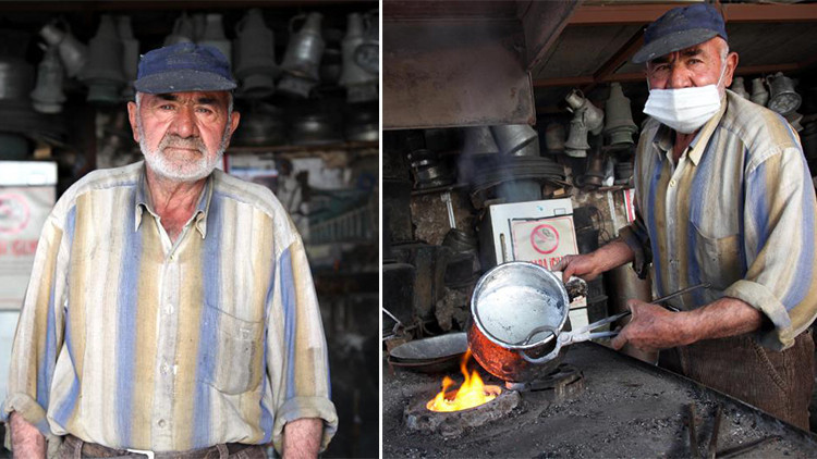 KAYSERİ'nin Develi ilçesinde Enver Türkmen (77), babasından öğrendiği kalaycılık mesleğini ilerleyen yaşına rağmen yaşatmaya çalışıyor. Türkmen, "Develi'de 1979 yılında 36 usta bu işi yapıyordu. Şimdi sadece 2 usta kaldık. Maalesef bizden sonra bu işi yapacak usta bulunmuyor" dedi.