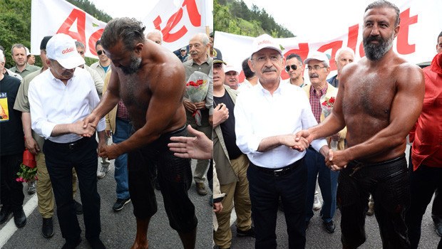 CHP lideri Kemal Kılıçdaroğlu'nun başlattığı adalet yürüyüşünde 7.gün, Vedat Türkali’nin kendi sesinden okuduğu “Bekle Bizi İstanbul” şiiriyle sabah 09.00'da başladı. Balyoz mağdurları ile Manisa Soma’da yaşamını yitiren madenci ailelerinin, Kamu-İş Sendikasının ve İzmir Büyükşehir Belediyesi Başkanı Aziz Kocaoğlu’nun da katıldığı yürüyüşte alınan yoğun güvenlik önlemleri dikkat çekti. Yürüyenlere jandarma komando birliği orman içinden ve yol kenarından eşlik ederken drone uçuşu da devam etti.