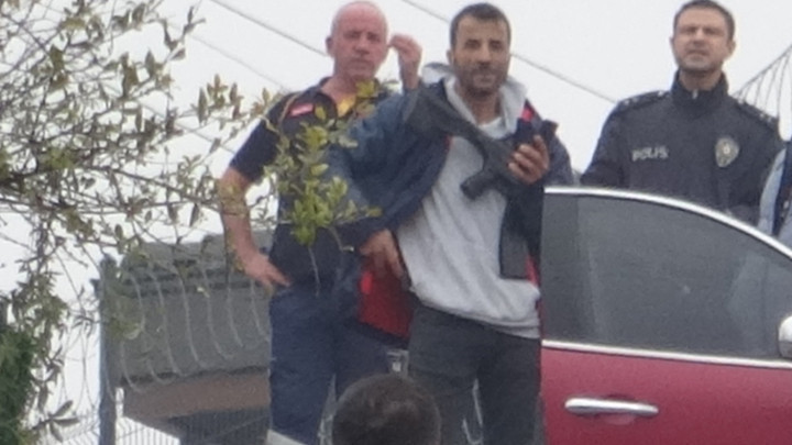Ekiplerin ikna çalışmalarını sürdürdüğü sırada F.K.’nin akrabaları da elindeki tüfeği bırakması için olay yerine geldi. Polis ekiplerinin ve akrabalarının yaklaşık 1 saatlik ikna çalışmasıyla F.K., elindeki tüfeği polis ekiplerine teslim etti. F.K., gözaltına alındı. Olay yerinde bulunan otomobilde ve evde inceleme yapılırken, polis ekiplerinin evden çok sayıda klasörü çıkardığı görüldü.