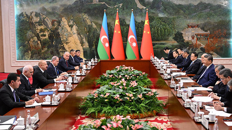 Azerbaycan Cumhurbaşkanı İlham Aliyev, Çin'de düzenlenen Şanghay İşbirliği Örgütü'nün (ŞİÖ) 25. Devlet Başkanları Konseyi Zirvesi kapsamında Çin Devlet Başkanı Şi Cinping ile bir araya geldi. Görüşmede Şi, Azerbaycan ile Çin arasında 30 yılı aşkın süredir başarılı işbirliği ilişkilerinin kurulduğunu, bugün ise bağların kapsamlı stratejik ortaklık düzeyinde geliştiğini söyledi. Aliyev'in Çin'e daha önce düzenlediği resmi ziyareti memnuniyetle hatırlatan Şi, bu çerçevede yapılan görüşmelerin önemine değindi. Şi, iki ülke arasındaki ticaret hacminin arttığını, enerji, yenilenebilir enerji ve dijitalleşme alanlarında işbirliğinin genişlediğini vurguladı.