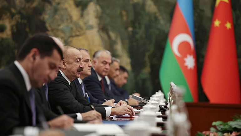 Cumhurbaşkanı Aliyev de Çin'e resmi ziyaretini hatırlatarak, bu çerçevede yapılan görüşmelerin iki ülke arasındaki işbirliğini ileriye taşıdığını, imzalanan kapsamlı stratejik ortaklık belgesinin önemli olduğunu vurguladı. Aliyev, Azerbaycan'ın dış politikasında Çin ile ilişkilerin geliştirilmesinin öncelikli alanlardan biri olduğunu belirtti. Tayvan, Hong Kong ve Sincan Uygur Özerk Bölgesi konularında Çin'in tutumunu desteklediklerini kaydeden Aliyev, Azerbaycan'ın Tayvan'daki seçimleri kınayan ilk ülkelerden biri olduğunu hatırlattı.