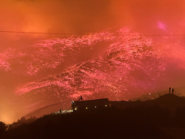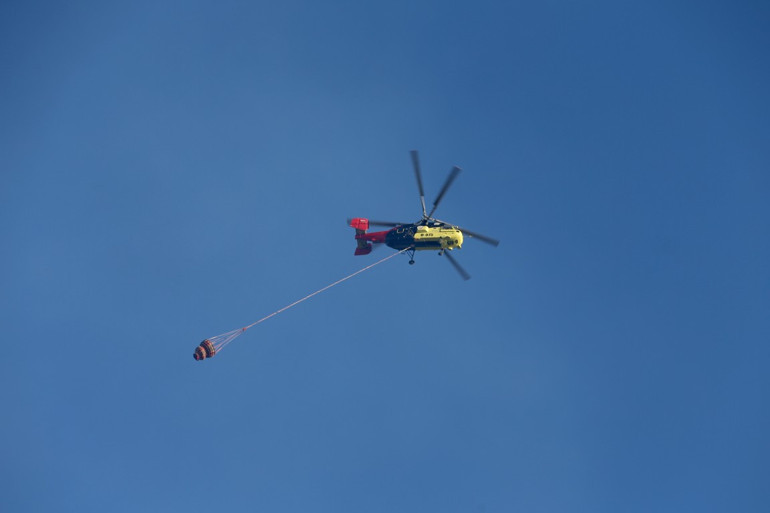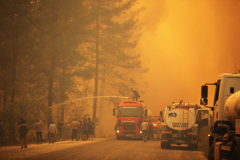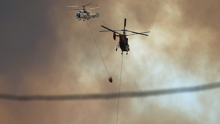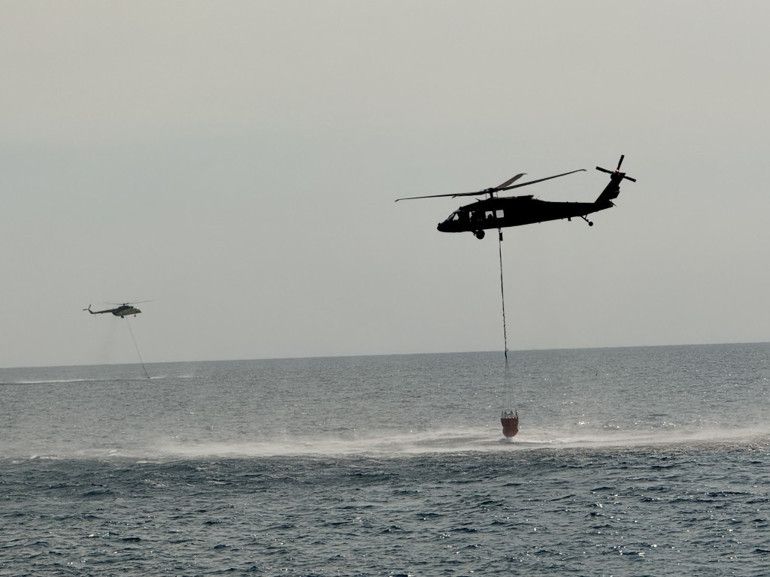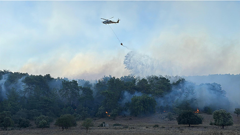 Havalanan helikopterler, yangın havuzları ve denizden aldıkları suyu yanan alanlara taşıyor. Çok sayıda itfaiye ekibi ve orman işçileri, alevlerin yayılmaması için mücadele ediyor.