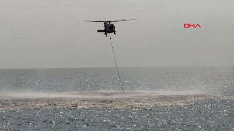 Öte yandan yangın söndürme çalışmalarına askeri helikopter de destek verdi.