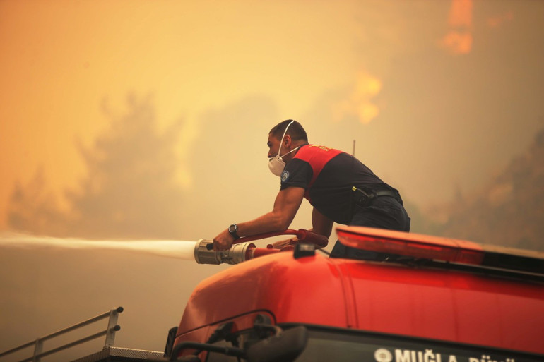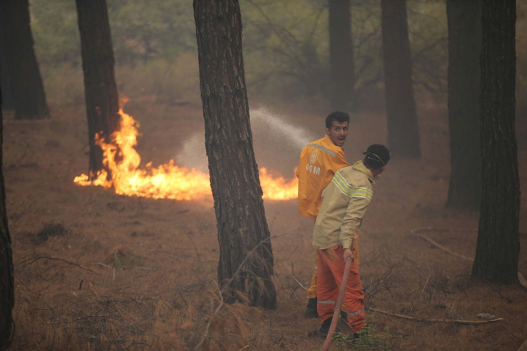 Orman Genel Müdürlüğü sosyal medya hesabından yaptığı açıklamada Aydın'ın Çine ilçesi, Antalya ve Muğla'daki alevlere 14 uçak, 20 helikopter, 153 arazöz, 14 iş makinesi ve 815 personelle müdahale edildiğini bildirdi.