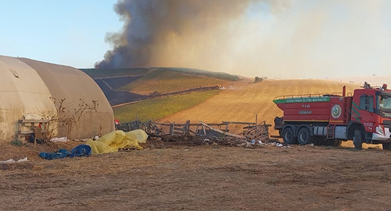 İlçeye bağlı Koruköy ve Kavakköy köylerinin yakınında bulunan tarım arazisinde henüz belirlenemeyen nedenle yangın çıktı.