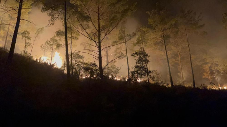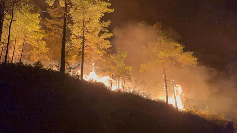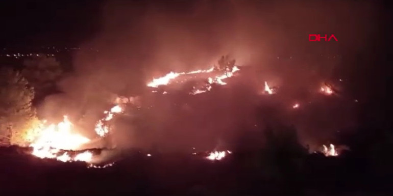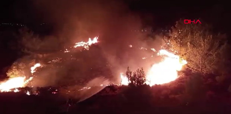Ekipler, rüzgarın etkisiyle yayılan alevleri kontrol altına almak için gece boyu çalışma yürüttü.