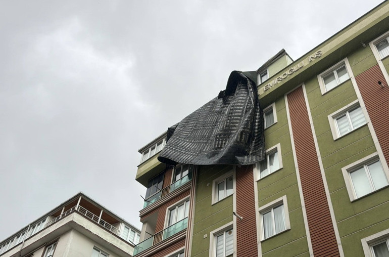 İstanbul Valiliği ve AKOM'un uyarılarının ardından İstanbul genelinde şiddetli rüzgar etkili oluyor. Kent genelinde etkili olan olumsuz hava koşulları nedeniyle bazı binalarda çatı uçmaları meydana gelirken çok sayıda ağaç da devrildi. Beylikdüzü Adnan Kahveci Mahallesi'nde bir sitenin çatısındaki yalıtım malzemeleri rüzgarın etkisiyle savruldu.