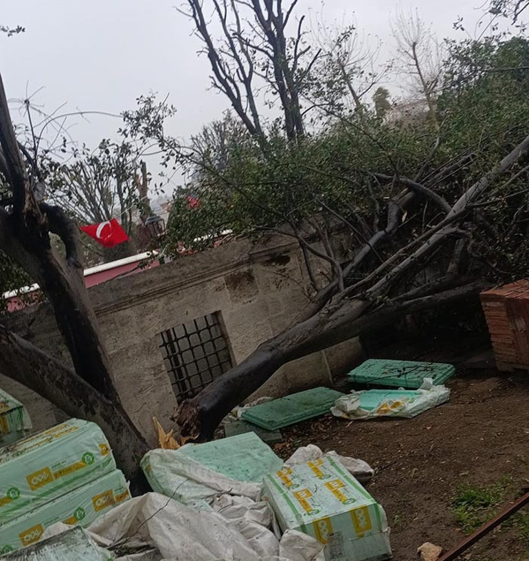 Beşiktaş’ta ise kuruyan bir ağaç fırtınanın etkisiyle kırılıp kaldırıma devrildi. Olay sırasında kaldırımda yürüyen kimsenin olmaması olası bir faciayı önledi.