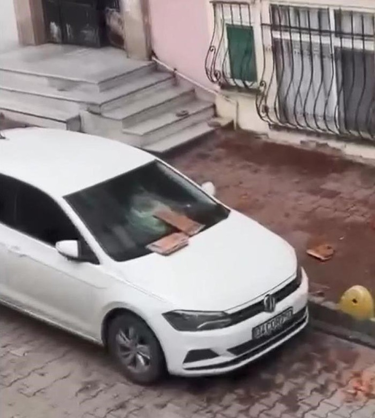 Etrafa saçılan kiremit ve taş parçaları sebebiyle 6 araçta maddi hasar oluştu. Bu araçlardan 2 tanesinin neredeyse kullanılamayacak duruma geldiği, 1 tanesinin ise adeta ikiye katlandığı görüldü.