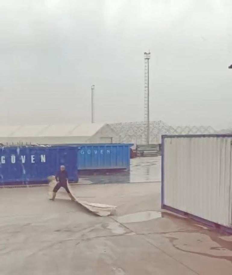 Limanda istiflenen konteynerlerden bazıları rüzgarın etkisiyle düştü. Başka bir noktadaki limanda ise vinç devrildi.