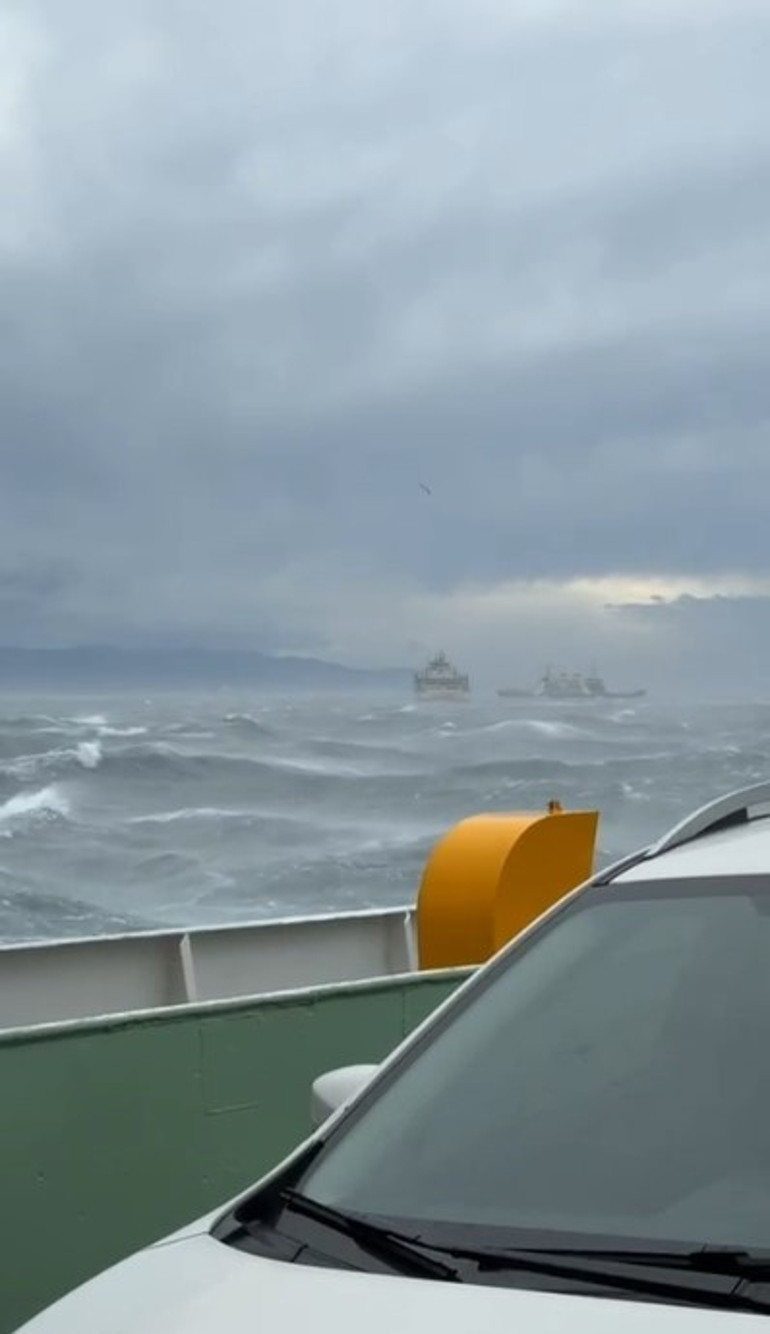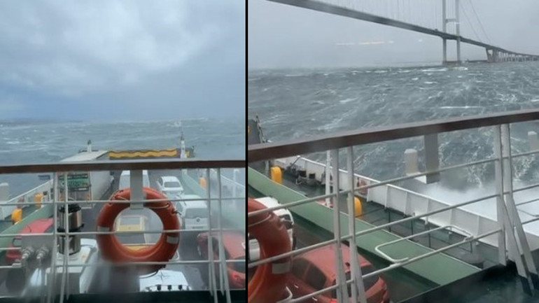 Tavşanlı beldesinden Gebze Eskihisar istikametine hareket eden, içinde çok sayıda yolcu ve aracın bulunduğu feribot, Marmara Denizi'nde oluşan dev dalgalar nedeniyle zor anlar yaşadı.