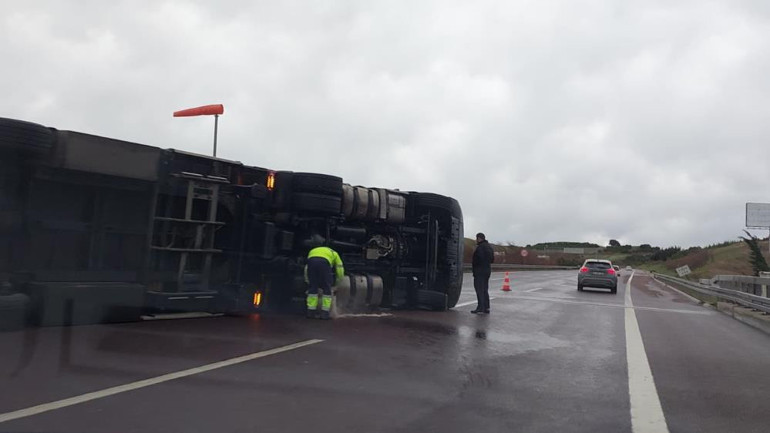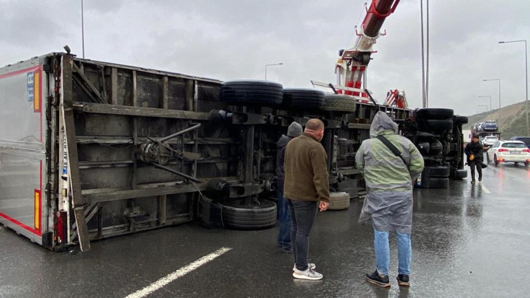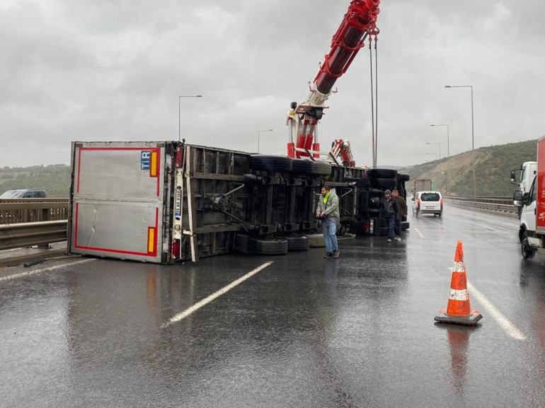Otoyolun Dilovası ilçesi geçişinde seyir halinde olan 2 tır, şiddetli rüzgarın etkisiyle kontrolden çıkarak devrildi. İhbar üzerine bölgeye jandarma ve otoyol ekipleri sevk edildi. Kazalarda şans eseri yaralanan olmazken, devrilen araçların kaldırılması için çalışma başlatıldı.