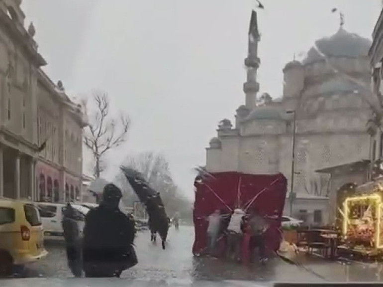 Mecidiyeköy meydanda bulunan seyyar simit tezgahı ise kuvvetli rüzgara dayanamayarak devrildi. Tezgahın arkasında oturan simitçi ise dengesini kaybederek yere düştü. O anlar cep telefonu kamerasına yansıdı.