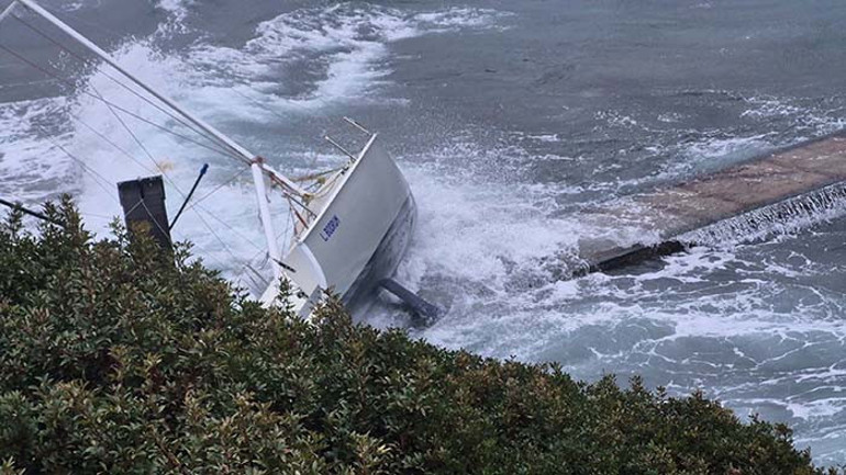 Muğla'nın Bodrum ilçesinde fırtına nedeniyle yelkenli karaya oturdu, 1'i balıkçı, 1'i yelkenli tekne olmak üzere 2 tekne suya gömüldü.