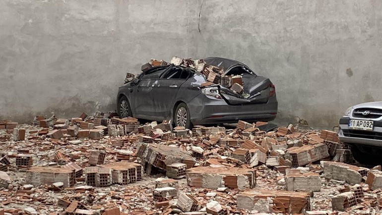 Olay, saat 12.40 sıralarında Yenibağlar Mahallesi Hacı Hüsnü Sokak'ta meydana geldi. Edinilen bilgilere göre; sokak üzerinde bulunan metruk bir binanın çatı duvarı, fırtına ve şiddetli rüzgâr sebebiyle yan taraftaki açık otoparkın içine devrildi.