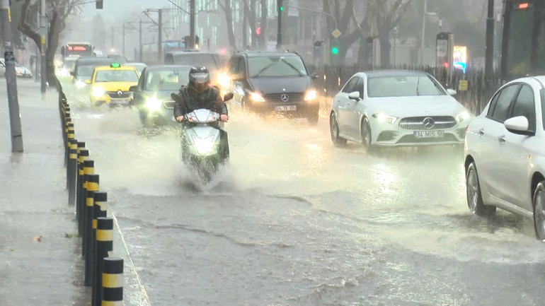 İstanbul'da fırtınanın yanı sıra yer yer etkili olan yağış nedeniyle, Beyoğlu Meclis-i Mebusan Caddesi göle döndü. Araçlar yağmur sularıyla dolan yolda güçlükle ilerledi. Motosiklet sürücüleri de yolda ilerlerken zor anlar yaşadı.
