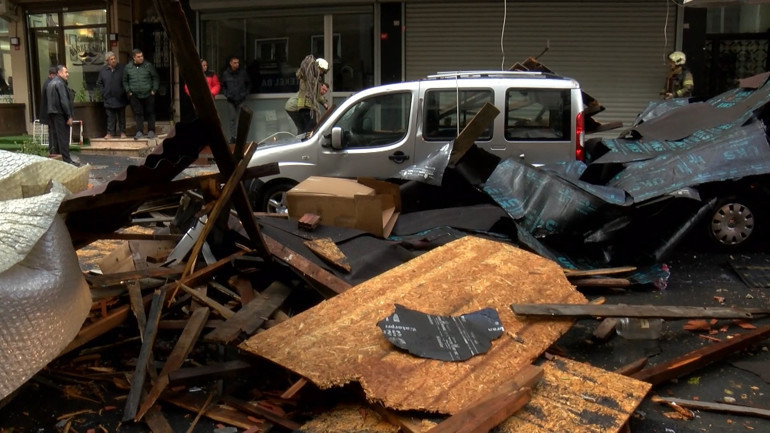 Şişli’de ise bir binanın çatısından kopan parçalar park halindeki 3 aracın üzerine düştü. O sırada caddeden kimsenin geçmemesi olası bir facianın önüne geçti. İhbar üzerine olay yerine itfaiye ve polis ekibi sevk edildi. Çatıdan kopan parçalar itfaiye merdiveniyle alınırken, parçaların zarar verdiği 3 araçta hasar oluştu.Çatının uçma anı ise bir iş yerinin güvenlik kamerası tarafından kaydedildi. Görüntülerde çatıdan kopan parçaların araçların üzerine düştüğü anlar görülüyor.Aracı hasar gören Sinan Taylan "Ben hastanedeydim. Geldim aracımı bu vaziyette gördüm. Allah'tan can kaybımız yok. Gelecek olan mala gelecek, yapacak birşey yok. Hastanedeyken aradılar. 'Gel aracının üzerine çatı uçtu' dediler. Geldim bu vaziyette gördüm aracımı. Can kaybı yok; araçlarda ve çatılarda zarar var. Çok rüzgar vardı. İstanbul'da çok sayıda çatı uçmuş sanırım" dedi.