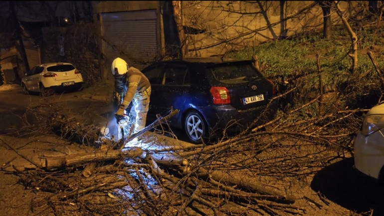 Beykoz’da etkili olan fırtına nedeniyle devrilen ağaç, park halindeki 2 otomobilin üzerine düştü. Olayda yaralanan olmazken, araçlarda hasar meydana geldi.