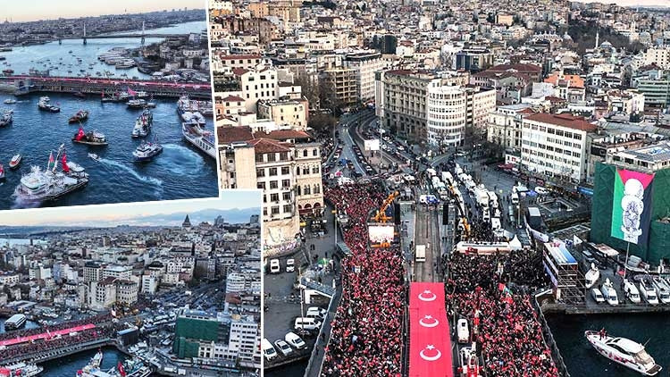Filistin'e destek için 520 bin kişi İstanbul'da Galata Köprüsü'nde buluştu