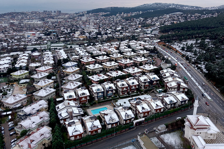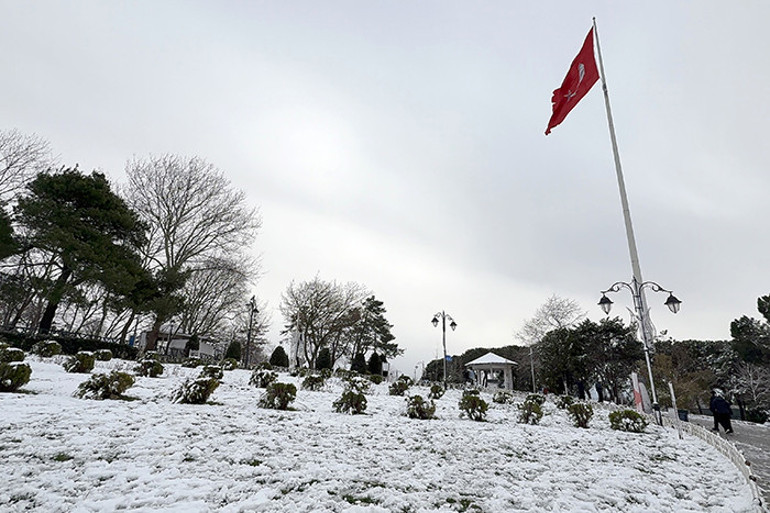 Başakşehir, Arnavutköy ve Beylikdüzü'nde de zaman zaman şiddetini artıran kar yağışı nedeniyle yeşil alanlarda beyaz kar örtüsü oluşmaya başladı.