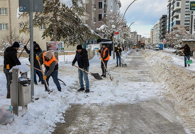 Öte yandan belediye ekipleri kent merkezinde de yollarda ve kaldırımlarda biriken karları temizlemeye çalışıyor.