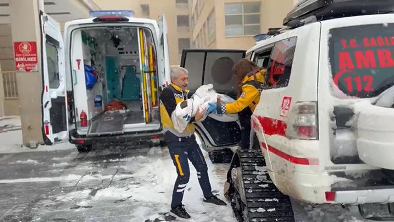Şanlıurfa'da etkili olan yoğun kar yağışı nedeniyle yolu kapanan mahallelerdeki hastalar, paletli ambulanslarla hastaneye ulaştırıldı.