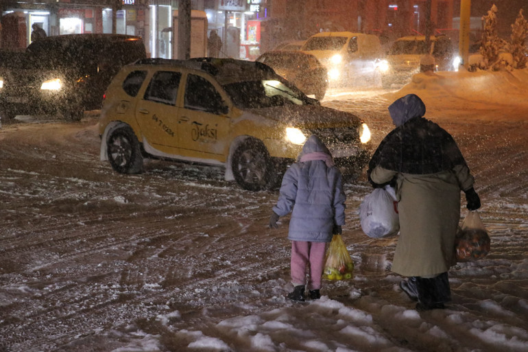 Kent merkezinde kar kalınlığı 40 santimetreye ulaşırken, sürücüler ilerlemekte güçlük çekiyor.