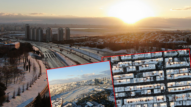 İSTANBUL'DA GÜN DOĞUMUYLA BİRLİKTE KAR MANZARASI KAMERALARA YANSIDI