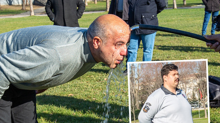 İnsanda bıraktığı etkinin bilinmesi ve ona göre kullanması gerektiği belirtilen biber gazı, ilk olarak eğitime katılan güvenlik personeline uygulandı. Eğitmenin yüzlerine biber gazı sıktığı personel, yakıcı etkiyi hisseder hissetmez alanda hazırlanan hortumlardan akan suyla yüzlerini yıkadı. Biber gazının etkilerini bizzat deneyimleyen güvenlik görevlileri, uzun süre gözlerini açmakta zorlandıklarını belirtti.