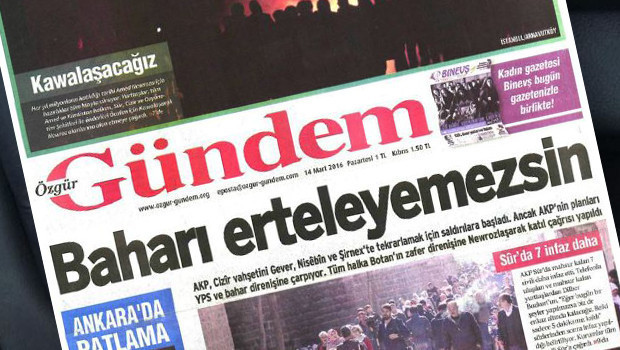 Başsavcılığın, Özgür Gündem gazetesinin yetkilileri hakkında soruşturma başlattığı anımsatılan yazıda, gazetenin bugünkü nüshasının ilk sayfasında "Newroz'un Ayak Sesleri", "Baharı Erteleyemezsin", "Sur'da 7 infaz daha" ve "Ankara'da patlama" başlıklı haberlere dikkat çekilerek, şu ifadelere yer verilmişti:
