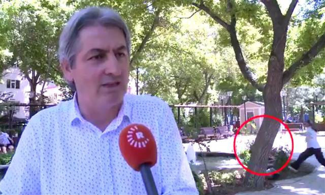 Ankara Cemal Süreya Parkı’nda Erbil merkezli uydudan yayın yapan Rudaw Televizyonu’nun HDP Van Milletvekili Lezgin Botan ile yaptığı röportaj sırasında ilginç bir olay yaşandı. Röportaj devam ettiği sırada parkta bakıcısı olduğu değerlendirilen bir kadın ile oynayan bir çocuk bakıcısının yanından koşarak parktaki göletin kenarına geldi ve suya düştü.