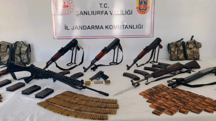 Arama yapılan adreslerde, duvarların arasına, plastik su boruları içine ve saman altlarına gizlenmiş 7 tüfek, 1 tabanca, 13 şarjör ile 718 mermi ele geçirildi.