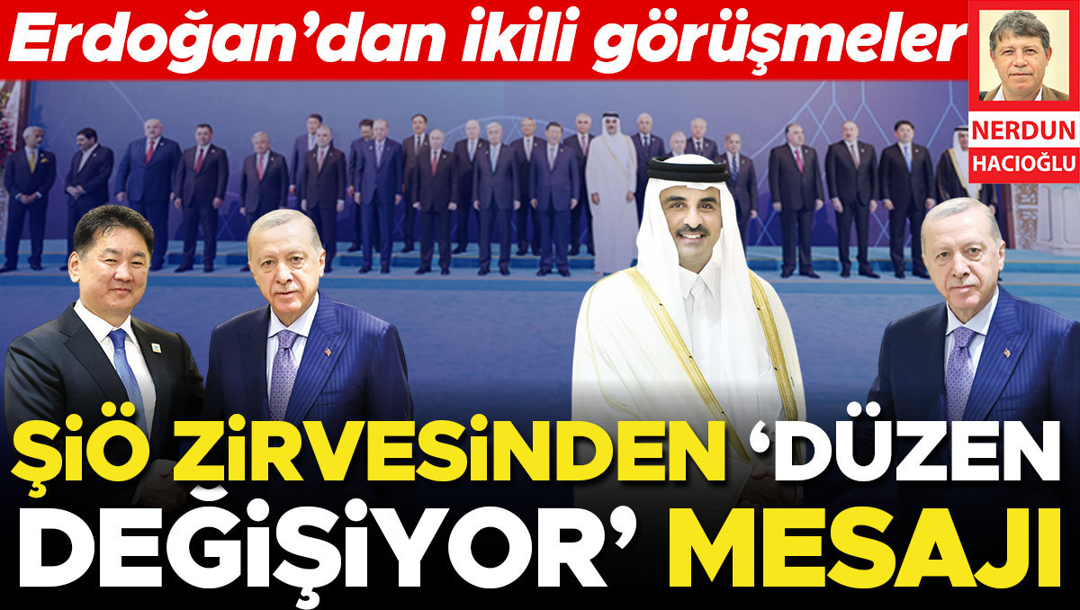- Erdoğan Astana’da ikili görüşmeler de yaptı. Zirve öncesi Katar Emiri Şeyh Temim bin Hamed Al Sani ile bir araya geldi. Ardından Moğolistan Cumhurbaşkanı Khurelsukh ile görüştü. Görüşmede Türkiye ile Moğolistan ikili ilişkileri, bölgesel ve küresel konular ele alındı. Çin Devlet Başkanı Şi Cinping ve Belarus Cumhurbaşkanı Aleksandr Lukaşenko ile de birer görüşme yaptı. Görüşmeler basına kapalı yapıldı.