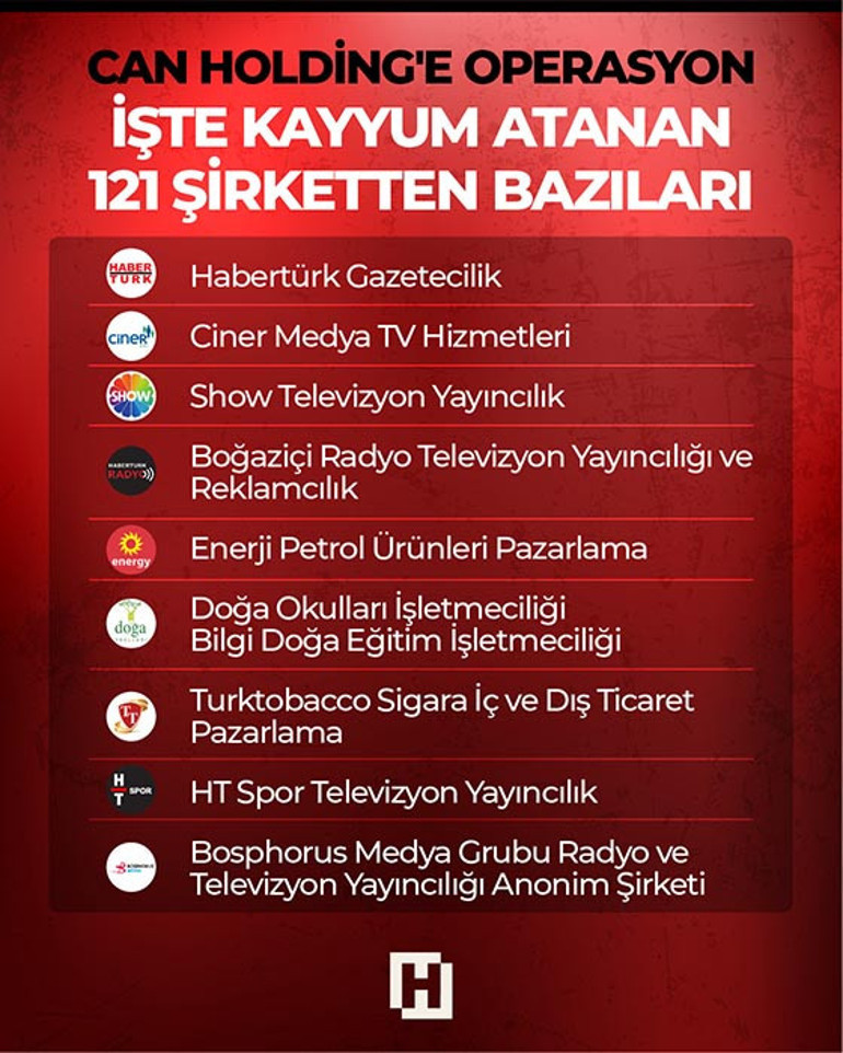 'Suç örgütü kurmak', 'kaçakçılık', 'dolandırıcılık' ve 'suçtan kaynaklanan mal varlığı değerlerini aklamak' suçlamasıyla başlatılan soruşturma kapsamında holding bünyesindeki Habertürk ve Show TV başta olmak üzere 121 şirkete ve malvarlıklarına el konularak TMSF' ye devredildiği ve şirketlerde aramaların devam ettiği bilgisi alındı.