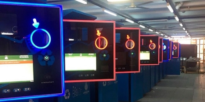 İSTANBUL Büyükşehir Belediyesi (İBB), sayısı 30 milyonu aşan ve Türkiye’nin tamamında geçerli olması planlanan İstanbulkart’a pet şişe ve alüminyum içecek kutuları atılarak kredi yüklemesi yapılmasını sağlayan "Akıllı Geri Dönüşüm Konteyneri" makinelerini tanıttı. Şu anda sayısı 10 olan ve 1 ay sonra 100’e çıkacak konteynerler, ilk önce metro istasyonlarına ve pilot okullara yerleştirilecek. Büyüklüğüne göre pet şişe ve alüminyum içecek kutusu başına 2 kuruştan 9 kuruşa kadar ulaşım kartına yüklenecek. Kartına yükleme sayısı fazla olanlar, Şehir Tiyatroları’ndan ücretsiz tiyatro bileti alabilecek ve İBB Sosyal Tesisler’inden indirimli yemek yiyebilecek.