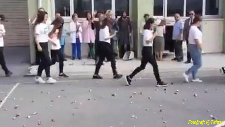 Kadıköy Anadolu Lisesi'ne ilk kez giriş yapan yeni öğrencileri, üst sınıflar simit atarak karşılamıştı.
