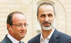 Fransa, SUKO’yu “Suriye halkının tek meşru temsilcisi” olarak tanıyan ilk Batılı ülke oldu. Fransa, SUKO’nun Paris’te bir “büyükelçilik” açacağını duyurdu. Böylece Paris ile Esad yönetimi arasında tüm ipler atıldı. SUKO Başkanı Ahmed Muaz el Hatip dün Fransa Başkanlık Sarayı Elysee’de Cumhurbaşkanı François Hollande ile mevkidaş gibi görüştü. İkili, görüşme sonrasında kameralara samimi pozlar verdi. El Hatip, Batı ülkelerinin kendilerinden beklediği Suriye için bir geçiş hükümeti kurma işini üstlenmeye hazır olduklarının altını çizdi. Muhaliflerin bu konuyla ilgili çalışmaları sürüyor.
