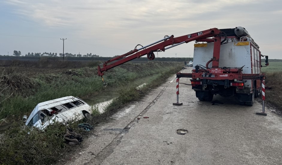 Adana'da sabah saatlerinde Yüreğir ilçesine bağlı Irmakbaşı Mahallesi'nde kaza meydana geldi. Sürücüsünün ismi belirlenemeyen, tarım işçilerini taşıyan 06 FP 3243 plakalı minibüs, kontrolden çıkarak yol kenarındaki sulama kanalına devrildi.