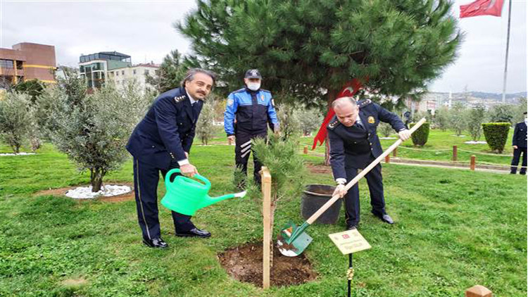Trabzon'da Polis Haftası etkinlikleri kapsamında, karekod uygulamalı şehit emniyet mensupları için hatıra fidanlığı oluşturuldu.