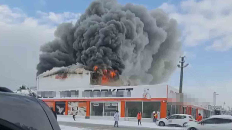 Yapı markette bulunan kimyasal maddeler nedeniyle patlamalar meydana gelirken, yükselen dumanlar, kentin birçok noktasından görüldü.