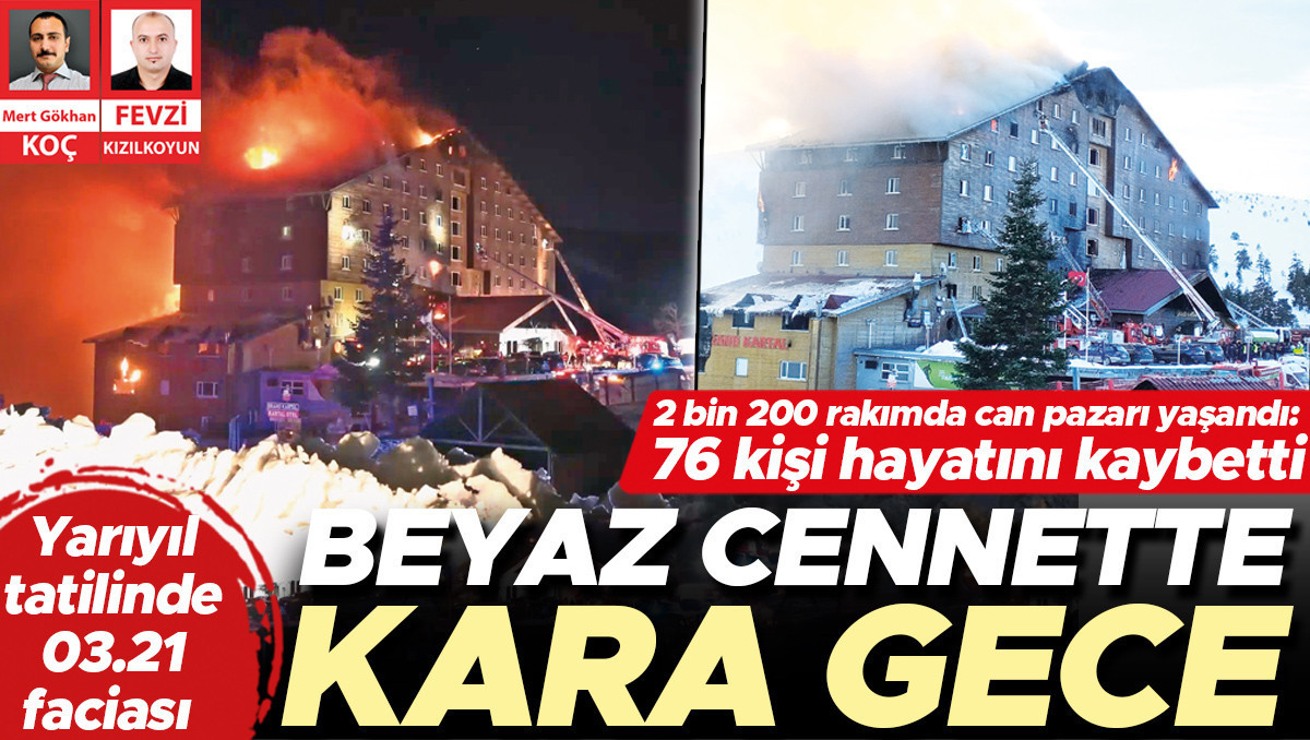 Türkiye’nin gözde kış tatil merkezi Bolu Kartalkaya’daki 12 katlı Grand Kartal Otel’de şafak vakti 03.21’de yangın çıktı. Otelin 4’üncü katındaki restoran bölümünde henüz belirlenemeyen nedenle çıkan yangın, dışı ahşap kaplama olan otelde kısa sürede büyüdü. Otelde konaklayan 238 tatilci ve otel çalışanları alev ve dumanlar arasında mahsur kaldı. Otomatik kapılar kilitlendi, çıkış yolu bulamayan tatilciler, camları kırarak dışarıya çıkmaya çalıştı. Çoğu kişi odalarının pencerelerine çıkarak yardım istedi. Bazıları camdan çarşaf sarkıtarak canını kurtarmaya çalıştı. Bölgedeki diğer otellerde kalanlar yangında mahsur kalanların yardımına koşarken, yangını da haber verdi.