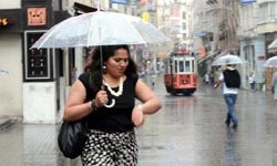 Bazıları ise yağmura inat sağanak altında yürümeye devam ederken, bir kadının kendini korumak için pazardan aldığı naylon leğeni kafasına koyarak caddede yürümesi ilginç bir görüntü oluşturdu.