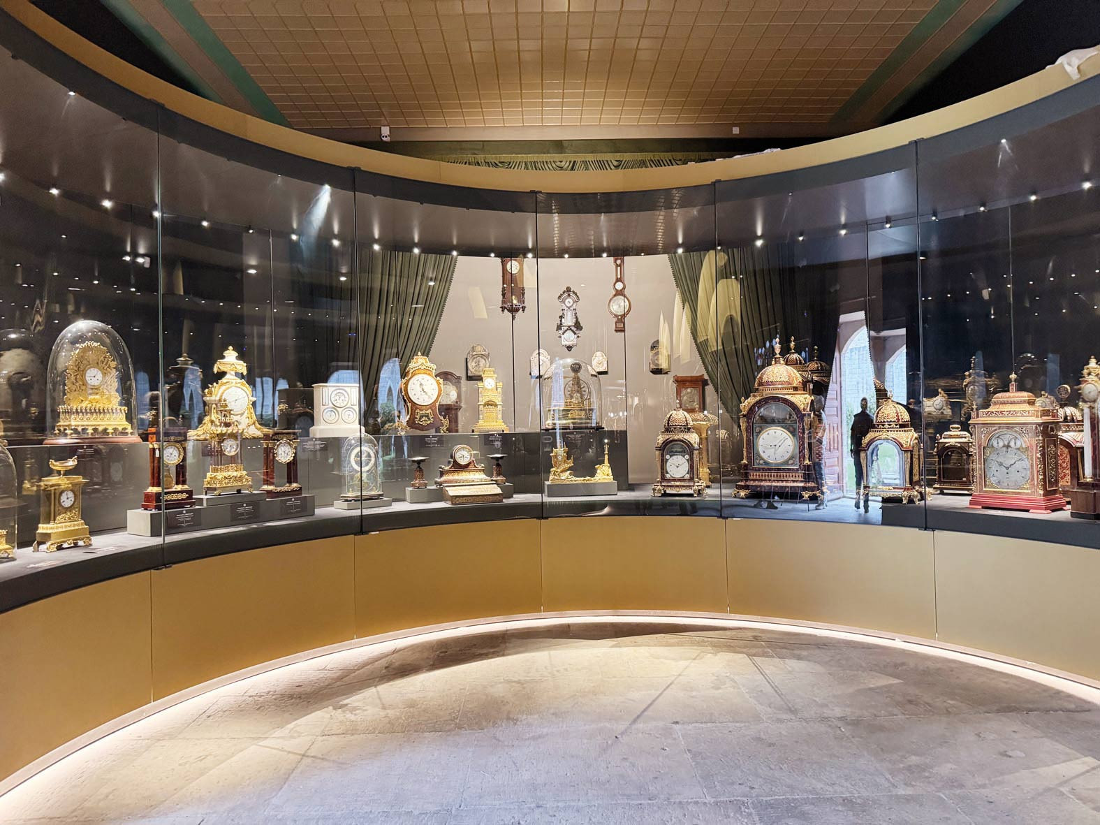 Müzede; Osmanlı dönemi saat ustalarından Ahmed Eflaki Dede ve Süleyman Leziz’in imzasını taşıyan eserlerin yanı sıra, Sultan II. Abdülhamid’e armağan edilen Rus yapımı ‘grifon’ figürlü masa saati, duvar saatleri, dönemin teknolojik yeniliklerini temsil eden oturtma saatler ve dünyada benzeri bulunmayan cep saatleri gibi nadide örnekler yer alıyor. Müze, hem Osmanlı hem de Avrupa saat sanatının seçkin örneklerini bir araya getiriyor. Eserler; Türk Saatleri, Boy Saatleri, Duvar Saatleri, Cep Saatleri, Masa Saatleri, Oturtma Saatler, Dekoratif Formlu Saatler, Ölçüm Aletleri ile Atölye ve Tamir Aletleri olmak üzere tematik başlıklar altında sınıflandırılıyor. Türk saatçiliğine adanmış özel bölümde, Osmanlı ustalarının tüm eserleri ilk kez ziyaretçilerin ilgisine sunuluyor.