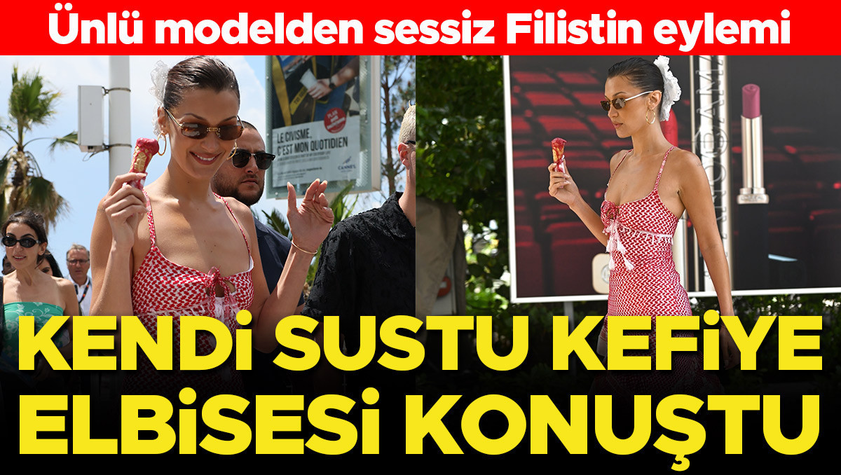 Ünlü model dün Cannes sokaklarında dolaşırken giydiği kırmızı kefiyeden yapılma elbisesiyle Filistin’e verdiği desteği gösterirken büyük beğeni topladı.