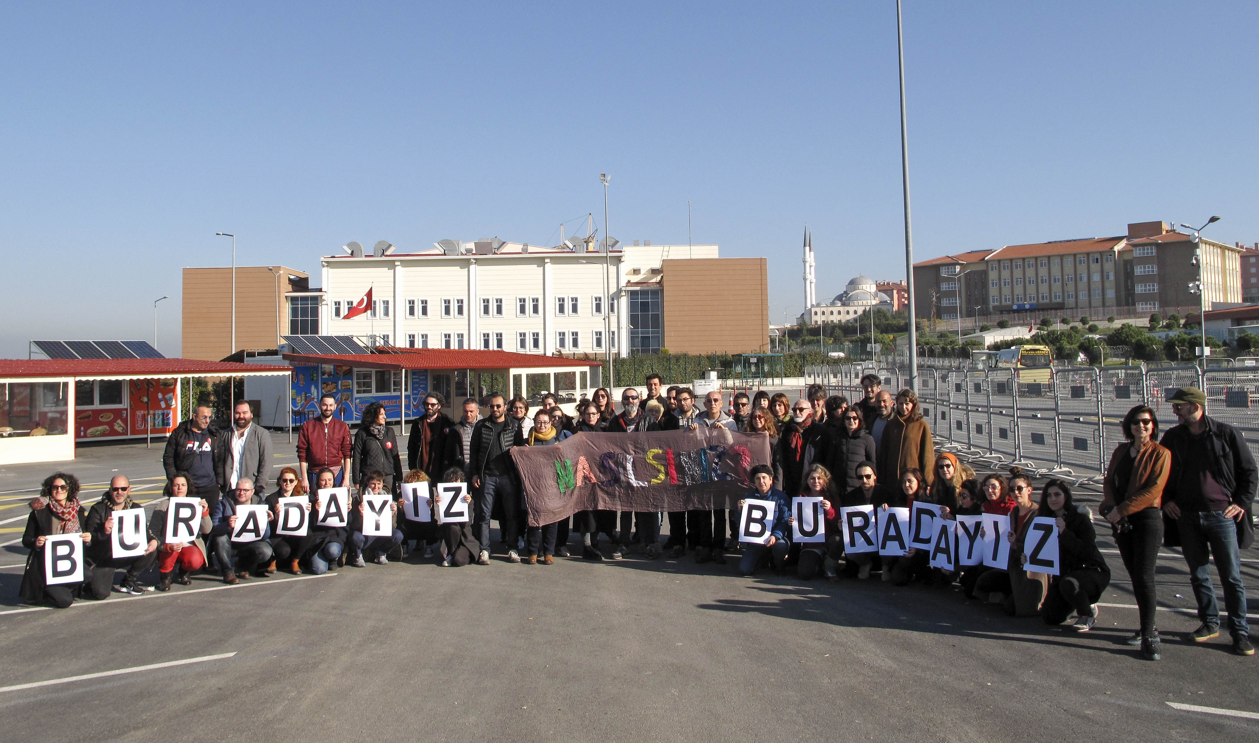 "Anayasayı ihlal" ve "Türkiye Cumhuriyeti hükümetini ortadan kaldırmaya teşebbüs" suçlamasıyla 1 Kasım 2017'de tutuklunan Anadolu Kültür Yönetim Kurulu Başkanı Osman Kavala'yı önceki gün sanatçı dostları Silivri Cezaevi'nde ziyaret etti. Aralarında sanatçılar Burçak Bingöl, İnci Eviner, Hale Tenger, Serkan Taycan, Murat Morova, Murat Akagündüz, Nalan Yırtmaç, Vahit Tuna, Volkan Aslan'ın da olduğu grupta kültür sanat kurumları çalışanları da yer aldı. Grup Silivri Cezaevi’nin önünde 'Buradayız' ve 'Nasılsınız' yazılı pankartlar açtı.